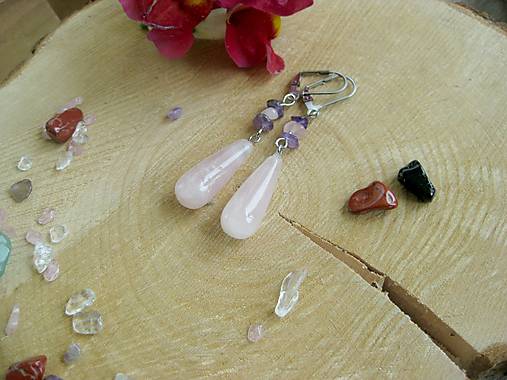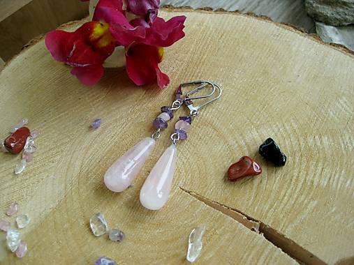 Náušnice slza s minerálmi, chirurgická oceľ (Ruženín + ametyst, č. 4296)