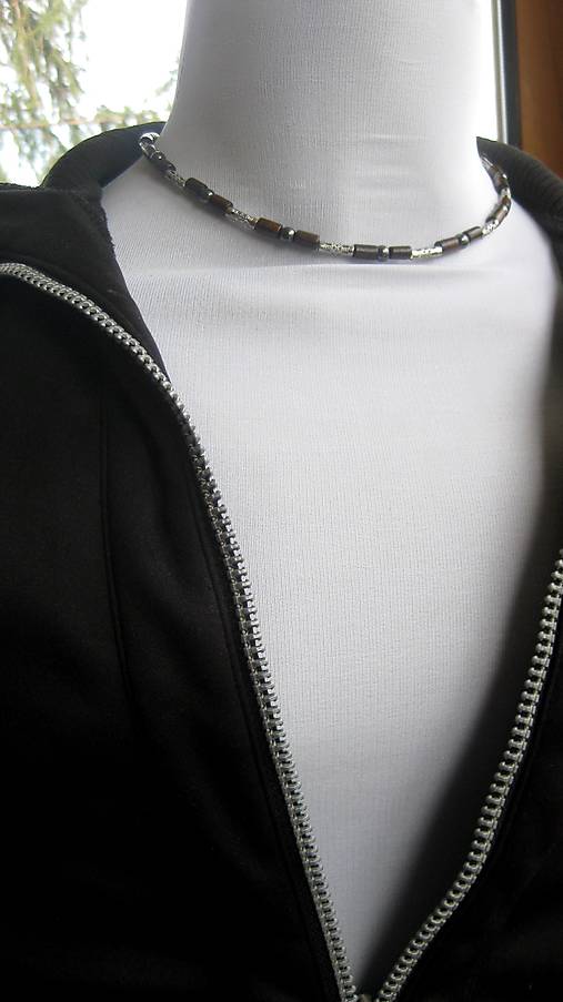 Pánsky náhrdelník okolo krku z minerálov - chirurgická oceľ (hematit + drevené korálky, č. 2605)