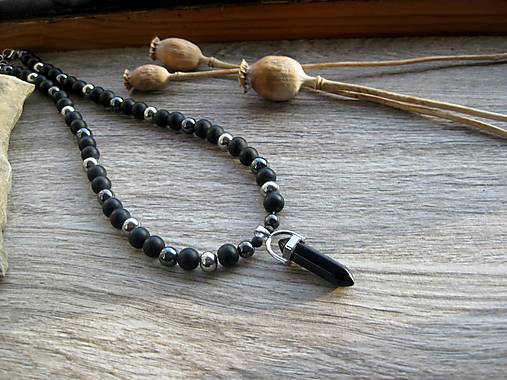 Pánsky náhrdelník z minerálov - chirurgická oceľ (s čiernym achátom, onyxom, hematitom, č. 3845)