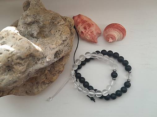 Partnerské náramky z minerálov Jin - jang (Onyx + krištáľ, č. 3851)